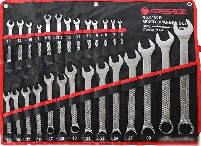 | Комплектация | Набор ключей комбинированных универсальный 27пр: 6-36мм.Разрезные 2пр: 10-12,11-13мм .Трещоточные 4пр: 8-13мм . |