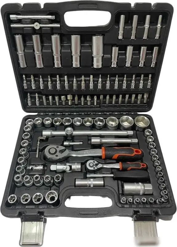| Комплектация | - 1/4": Головки, 13 шт - 4, 4.5, 5, 5.5, 6, 7, 8, 9, 10, 11, 12, 13, 14 мм; Удлинительные головки, 8 шт - 6, 7, 8, 9, 10, 11, 12, 13 мм; Головки Torx, 5 шт - Е4, 5, 6 7, 8 мм; Головки-биты, 17 шт - Sl 4, 5.5, 6.5; Ph 1, 2; Pz 1, 2; Н 3, 4, 5, 6; Т 8, 10, 15, 20, 25, 27, 30; Удлинители, 2 шт - 2, 4"; Универсальный шарнир (карданчик); Трещоточный ключ; Т-образный вороток с ползунком; Вороток с рукояткой 6". - 1/2": Головки, 18 шт - 10, 11, 12, 13, 14, 15, 16, 17, 18, 19, 20, 21, 22, 23, 24, 27, 30, 32 мм; Удлинительные головки, 5 шт - 14, 15, 17, 19, 22 мм; Свечные головки, 2 шт - 16, 21 мм; Головки Torx - Е10, 11, 12, 14, 16, 18, 20, 24 мм; Удлинители, 2 шт - 5, 10"; Универсальный шарнир (карданчик); Трещоточный ключ; Адаптер для бит; 3-х сторонний адаптер; Биты 8х30 мм, 17 шт - Sl 8, 10, 12; Т 40, 45, 50, 55, 60; Ph 3, 4; Pz 3, 4; Н 7, 8, 10, 12, 14; Шестигранные ключи, 3 шт - 1.5, 2, 2.5 мм; Кейс. |