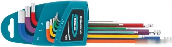 | Комплектация | Набор ключей имбусовых HEX, 1.5–10 мм, S2, магнит, экстра-длинные с шаром. |
