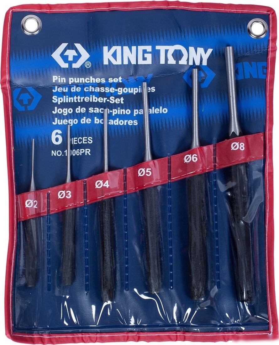 | Комплектация | Выколотки KING TONY (764) Размеры: ? 2x30, ? 3x40, ? 4x50, ? 5x50, ? 6x50, ? 8x50; Виниловый чехол |
