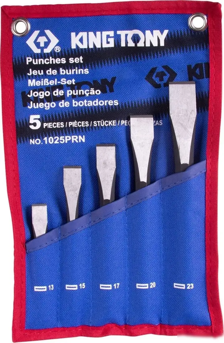 Этот набор зубил King Tony 1025PRN состоит из пяти различных зубил длиной от 100 до 200 мм, что позволяет выполнять разные виды работы. В комплект входит удобный чехол с люверсами для хранения и переноски инструмента. Зубила прочные и надежные, они подходят для разметки и долбления в различных материалах. В набор не входят торцевые головки и наборы для работы с винтами. Благодаря разным габаритам, их можно использовать в разных ситуациях, а компактный чехол облегчает хранение. Этот набор отлично подойдет для ремонта, строительных или бытовых задач. Он прост в использовании и долговечно служит долгие годы.