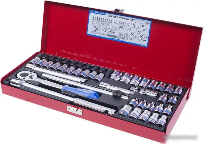 Универсальный набор инструментов King Tony 3534MR включает 36 предметов, который подойдет для различных ремонтных работ. В комплект входят головки разных размеров от 6 до 19 мм, а также вставки и биты Torx, что делает его очень удобным для работы с разными винтами и болтами. В набор также есть удлинители, шарнирный вороток и карбона, что помогает добраться до труднодоступных мест. Трещотка и трещотка с воротком облегчают закручивание и откручивание болтов. Все инструменты удобно аккуратно хранятся в прочном футляре, что позволяет брать их с собой и хранить в порядке.