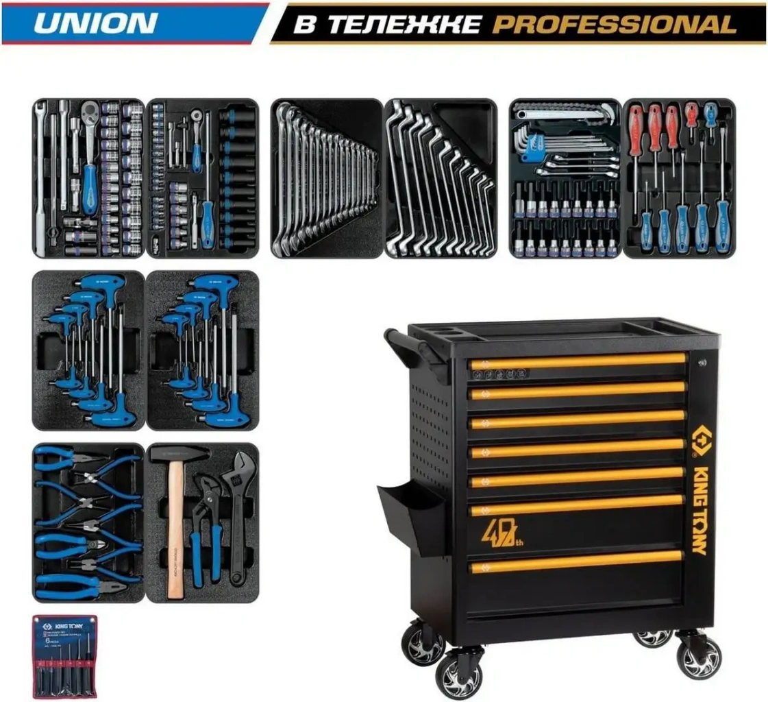 Универсальный набор инструментов King Tony 9G38-000MR40 включает 173 предмета, собранных в удобную комплектацию с 10 ложементами и 5 модулями. В набор входят профессиональные головки, ключи, отвертки, молоток и пассатижи, которые подходят для большинства домашних и профессиональных задач. Набор оснащён трещотками, удлинителями и карданами, что облегчает работу в труднодоступных местах. Благодаря разнообразию размеров и типов инструментов, вы сможете быстро завершить монтаж, ремонт или сборку. Включён цепной съёмник масляных фильтров, съемники стопорных колец и набор бит для удобства. Все инструменты изготовлены из прочных материалов и имеют эргономичную рукоять для комфортной работы. В комплекте есть глубокие, короткие и удлинённые головки, что позволяет точно подбирать инструмент под задачу. Также в наборе имеются специальные ключи и торцевые головки, что расширяет его функциональность. Этот инструментальный набор подойдёт для автомехаников, ремонтников и домашних мастеров, благодаря своей универсальности и высокой комплектации.
