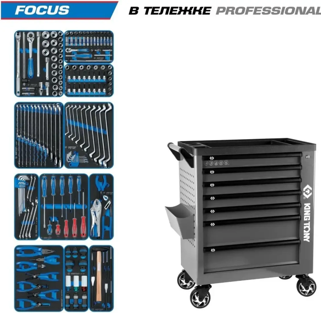 Этот универсальный набор инструментов King Tony состоит из 188 предметов, которые пригодятся для выполнения различных ремонтных работ. В комплект входят головки, ключи, отвертки, пассатижи и молоток, что позволяет работать с разными типами крепежа. Благодаря наличию трещотки и удлинителей, легко добраться до труднодоступных мест. В наборе есть как короткие, так и глубокие головки, что удобно для разных задач. Все инструменты аккуратно уложены в 11 ложементов и 4 модуля, обеспечивая порядок и удобство хранения. Крепкие и надежные материалы обеспечивают долговечность и безопасность при использовании. Особенность набора — наличие ударных головок и инструментов для демонтажа, что расширяет его возможности. Этот набор отлично подойдет для домашнего мастера и профессионала, желающего иметь под рукой все необходимые инструменты.