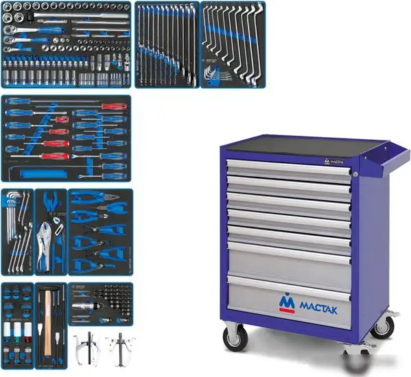 - Удобная тележка — облегчает хранение и транспортировку набора.
