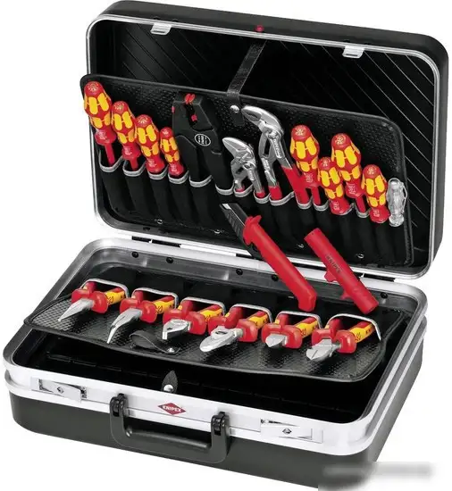 Универсальный набор инструментов Knipex 002120 включает 20 предметов, предназначенных для различных задач. В комплект входят плоскогубцы, кусачки, пассатижи и клещи, которые помогают выполнять разные виды работ быстро и точно. Также есть инструменты для снятия изоляции, резак для кабелей и отвертки с разными типами головок, что облегчает работу с винтами. В наборе есть специальный индикатор напряжения для проверки электричества, что повышает безопасность при работе с электроприборами. Высокотехнологичные сантехнические клещи Cobra® обеспечивают надежное захватывание труб. Все инструменты сделаны с эргономичной рукоятью для удобства и долговечности. Комплектация продумана так, чтобы охватить большинство бытовых и профессиональных задач. Благодаря универсальному набору, вы приобретаете все необходимое для домашнего и профессионального использования в одном месте.