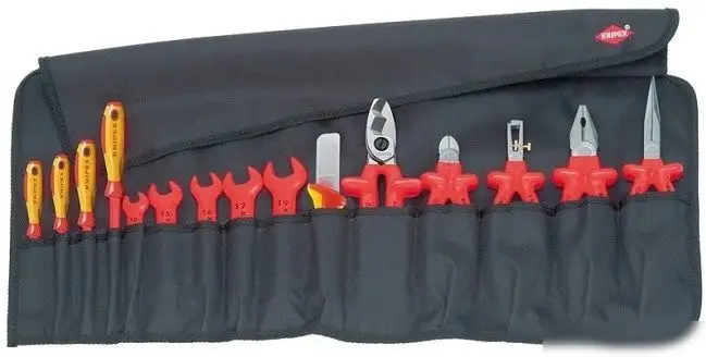 | Комплектация | Плоскогубцы комбинированные KNIPEX KN-0307200 - 1 шт. Инструмент для удаления изоляции KNIPEX KN-1107160 - 1 шт. Плоские круглогубцы с режущими кромками KNIPEX KN-2617200 - 1 шт. Кусачки боковые KNIPEX KN-7007160 - 1 шт. Ножницы для резки кабелей с двойными режущими кромками KNIPEX KN-9517200 - 1 шт. Ключ гаечный рожковый KNIPEX KN-980010 - 1 шт. Ключ гаечный рожковый KNIPEX KN-980013 - 1 шт. Ключ гаечный рожковый KNIPEX KN-980014 - 1 шт. Ключ гаечный рожковый KNIPEX KN-980017 - 1 шт. Ключ гаечный рожковый KNIPEX KN-980019 - 1 шт. Отвертка для винтов с шлицевыми головками KNIPEX KN-982025 - 1 шт. Отвертка для винтов с шлицевыми головками KNIPEX KN-982040 - 1 шт. Отвертка для винтов с шлицевыми головками KNIPEX KN-982055 - 1 шт. Отвертка для винтов с шлицевыми головками KNIPEX KN-982065 - 1 шт. Резак для кабелей KNIPEX KN-9852 - 1 шт. |