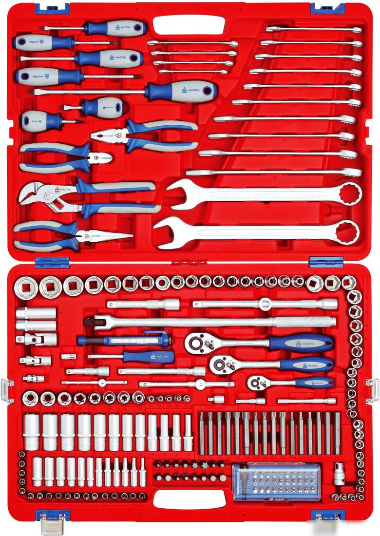 Этот набор домашнего мастера Мастак 01-212C включает 212 предметов, которые понадобятся для ремонта и сборки дома. В комплекте есть разные виды гаечных ключей, головок и бит, что позволяет работать с самыми разными крепежами и инструментами. В набор входят глубокие и стандартные торцевые головки, а также насадки с шлицами, крестами, звездочками и шестигранниками. Благодаря удлинителям и карданам, инструмент легко добирается до труднодоступных мест. В комплект также есть пассатижи, плоскогубцы, отвертки и прочие инструменты, необходимые в домашнем ремонте. Он подойдет как для простых задач, так и для более сложных ремонтов, благодаря множеству функций и разным размерам инструментов. Этот набор удобен тем, что все инструменты аккуратно хранятся и легко доступны при работе.