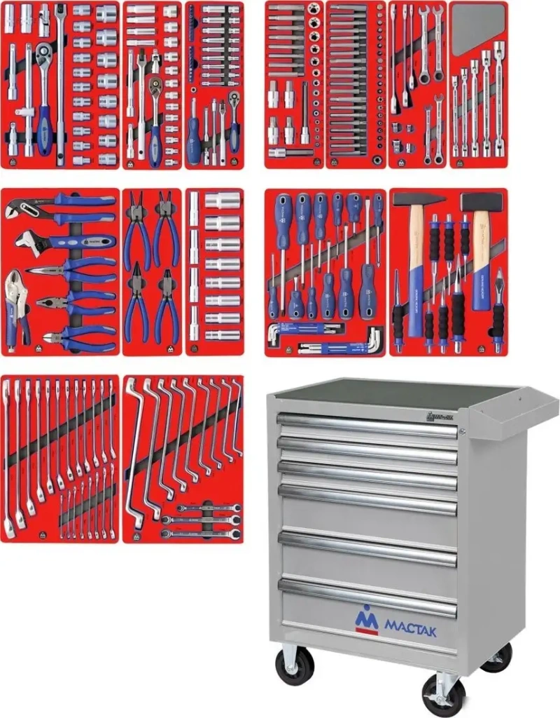 Универсальный набор инструментов Мастак 52-06270G включает 270 предметов, которые позволяют выполнять широкий спектр ремонтных работ. В набор входит качественная торцевая головка, воротки и ключи разных размеров и типов, что обеспечивает удобство и безопасность при работе с разными крепежами. В комплекте есть ударные воротки, удлинители и адаптеры, что помогает reach труднодоступные места. Шестигранные биты и головки позволяют легко работать с различными типами шурупов и болтов. В наборе предусмотрен трещоточный механизм для быстрой фиксации и откручивания деталей. Все инструменты расположены в комлекте из 14 ложементов и 5 модулей, что упрощает хранение и транспортировку. Яркий серый цвет позволяет легко находить инструменты в ящиках или на рабочем месте. Этот инструментальный набор отлично подойдет как для профессионалов, так и для домашнего использования.