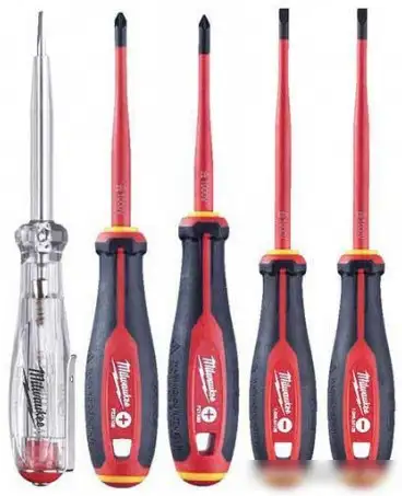 Этот набор отверток Milwaukee 4932478737 включает 5 инструментов, которые подходят для различных задач. Все отвертки диэлектрические и обеспечивают безопасное использование при работе с электрическими компонентами. В комплект входит отвертка с крестовой головкой PZ1 и PZ2, а также отвертки с плоскими головками SL3 и SL4, что позволяет работать с разными типами винтов. В набор также есть тестер напряжения, который помогает быстро проверить наличие электричества перед началом работы. Каждая отвертка удобно лежит в руке и делает работу более комфортной. Коробка обеспечивает простую транспортировку и хранение инструмента. Все элементы выполнены из прочных материалов, что увеличивает срок службы. Такой набор подходит как для профессионалов, так и для домашних мастеров. Обеспечивает безопасность и удобство при выполнении электромонтажных работ.
