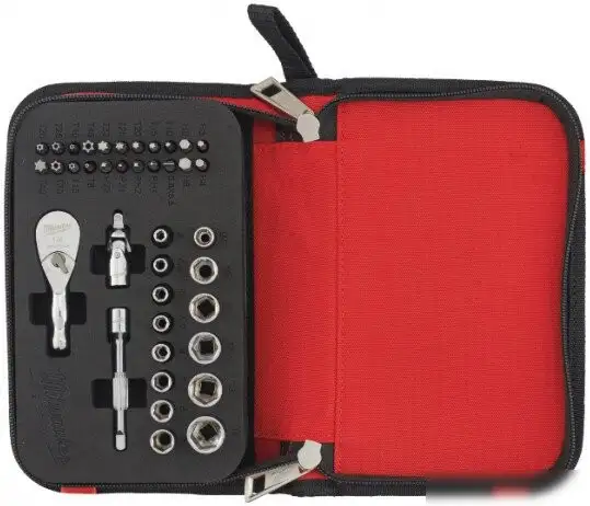 Этот набор Milwaukee содержит 39 предметов для выполнения различных ремонтных и строительных задач. В комплект входит трещотка с квадратом 1/4" и 13 торцевых головок разных размеров, что позволяет быстро менять насадки и работать с разными крепежами. В наборе есть универсальный шарнир и удлинитель длиной 76 мм для удобства доступа к труднодоступным местам. Включены ударные долота SHOCKWAVE™, которые отлично справляются с высоким усилием и позволяют выполнять сложные задачи без повреждений. Адаптер для розеток расширяет возможности применения, позволяя использовать разные размеры. Вся комплектация компактно упакована для хранения и переноски. Использование набора помогает ускорить работу и повысить её точность. Он подойдет как для профессионалов, так и для домашних ремонтных работ.