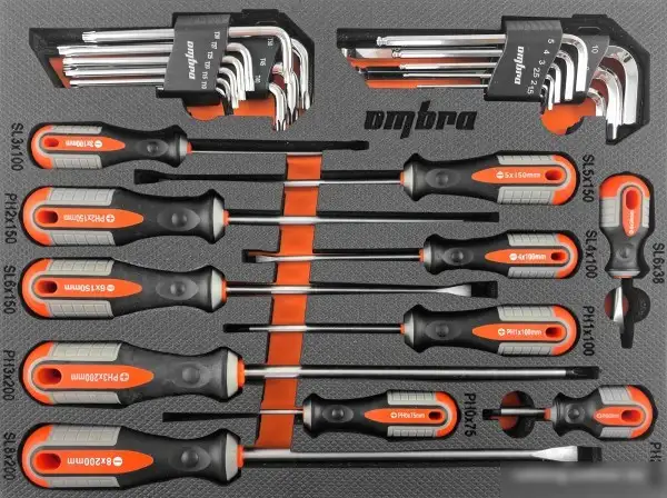 Этот набор ключей Ombra OMT29STE включает 29 предметов, которые пригодятся для выполнения различных ремонтных и монтажных задач. В комплект входят торцевые ключи с шаром разных размеров, что позволяет работать с болтами и гайками в самых труднодоступных местах. Также в наборе есть отвертки с разными типами наконечников, такими как Phillips и Slotted, чтобы справляться с разными видами винтов. В комплекте есть угловые шестигранные ключи, что делает работу более удобной в ограниченных пространствах. Такой набор подходит как для дома, так и для профессионального использования. Он поможет быстро и точно выполнить любые задачи, связанные с крепежными элементами. Благодаря качественным материалам все инструменты долговечны и надежны.