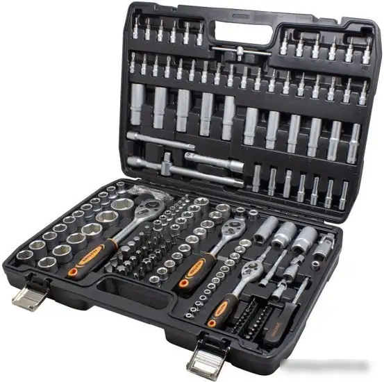 | Комплектация | головки 1/4"короткие 25 мм: 4, 4.5, 5, 5.5, 6, 7, 8, 9, 10, 11, 12, 13, 14 мм; головки 1/4"глубокие 50 мм: 4, 5, 6, 7, 8, 9, 10 мм; головки 1/4"Е-профиль 25 мм: Е4, Е5, Е6, Е7, Е8; биты 1/4"HEX 25 мм: 2, 3, 4, 5, 6 мм; биты 1/4"TORX 25 мм: T8, T9, T10, T15, T20, Т25, Т27, Т30, T8Н, T9Н, T10Н, T15Н, T20Н, Т25Н, Т27Н, Т30Н; биты 1/4"SL 25 мм: 4, 5.5, 7 мм; бита 1/4"РН 25 мм РН.1, РН.2, РН.3; бита 1/4"PZ.1, PZ.2, PZ.3; трещотка 1/4"; вороток 1/4"Т-образный 115 мм; удлинители 1/4"50, 100 мм; рукоятка 1/4"150 мм; кардан шарнирный 1/4"; биты 5/16"HEX 30 мм: 7, 8, 10, 12, 14 мм; биты 5/16"TORX 30 мм: Т40, Т45, Т50, Т55, Т60, Т70, Т40Н, Т45Н, Т50Н, Т55Н, Т60Н, Т70Н; биты 5/16"SL 30 мм: 8, 10, 12 мм; биты 5/16"PH 30 мм: PH.3, PH.4; биты 5/16"PZ 30 мм: PZ.3, PZ.4; головки-биты 1/4"HEX 35 мм: 2, 3, 4, 5, 6 мм; головки-биты 1/4"TORX 35 мм: T8, Т9, T10, T15, T20, T25, Т27, T30, T8Н, Т9Н, T10Н, T15Н, T20Н, T25Н, Т27Н, T30Н; головки-биты 1/4"SL 35 мм: 4, 5.5, 7 мм; головки-биты 1/4"РН 35 мм: РН.1, РН.2, РН.3; головки-биты 1/4"PZ 35 мм: PZ.1, PZ.2, PZ.3; битодержатель 1/4"(F)*1/4"(F); головки 3/8"короткие 28 мм: 10, 11, 12, 13, 14, 15, 16, 17, 18, 19 мм; головки 3/8"глубокие 63 мм: 10, 11, 12, 13, 14, 15 мм; головки 3/8"Е-профиль 28 мм: Е14, Е16, Е18; трещотка 3/8"; головка свечная 3/8"21 мм; битодержатель 3/8"(F) *5/16"(F); удлинитель 3/8"140 мм; кардан щарнирный 3/8"; головки 1/2"короткие 38 мм: 10, 11, 12, 13, 14, 15, 16, 17, 18, 19, 20, 21, 22, 24, 27, 30, 32 мм; головки 1/2"глубокие 77 мм: 16, 17, 18, 19, 22 мм; головки 1/2"Е-профиль 38 мм: Е20, Е24; головки свечные 1/2"16, 21 мм; трещотка 1/2"; удлинители 1/2"125, 250 мм с адаптером; кардан шарнирный 1/2"; битодержатель 1/2"(F)* 5/16"(F); ключи шестигранные Г-образные: 1.5, 2, 2.5, 3, 4, 5, 6 мм. Пластиковый кейс. |