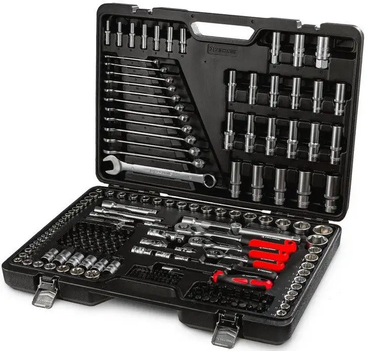 Этот универсальный набор инструментов Runtec RT-HT216T включает 216 предметов, которые пригодятся для различных ремонтных работ. В комплект входят комбинированные ключи и разные виды головок, такие как торцевые, глубокие и свечные, для работы с разными типами болтов и гаек. В наборе есть трещотка с 45 зубцами и тремя размерами (1/2", 3/8", 1/4"), а также T-образный вороток и кардан для удобства доступа к труднодоступным местам. Удлинители и адаптеры позволяют расширить возможности при работе с различной глубиной и длиной резьбы. В комплект также входит набор бит и насадок с множеством типоразмеров для отверток. Благодаря аккуратной укладке все инструменты легко хранить и быстро находить нужный аксессуар. Этот набор подходит как для профессионалов, так и для домашних мастеров, которым нужны надежные и универсальные инструменты.