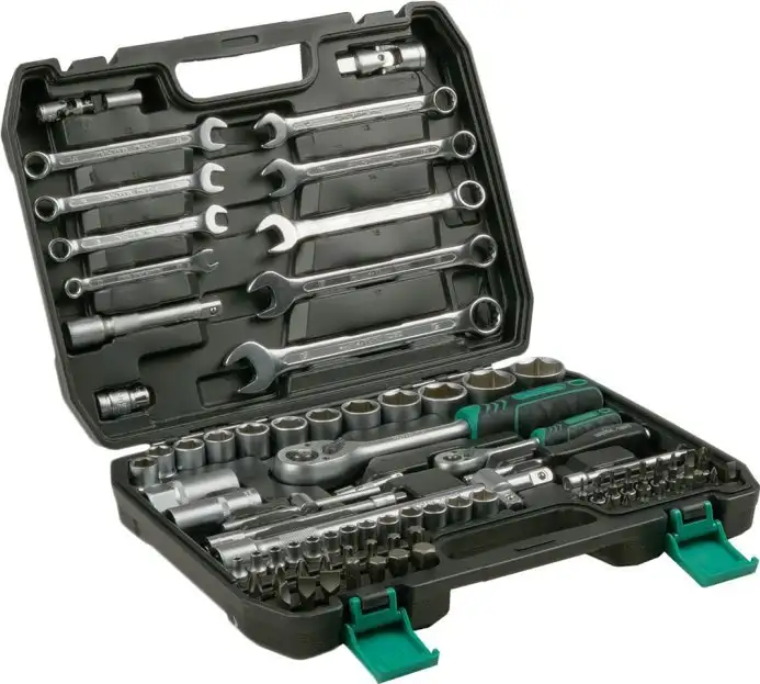 Этот набор включает 82 предмета, которые помогут вам выполнить множество монтажных и ремонтных работ. В комплекте есть трещотки с функцией реверса и быстрым сбросом, что ускоряет работу с крепежом. Вы найдете головки и биты для различных типов винтов, включая шестигранные, шлицевые, крестовые и TORX, что позволяет использовать набор в разных ситуациях. Для работы в труднодоступных местах есть удлинители, гибкие удлинители и карданные шарниры, обеспечивающие удобство и точность. Посадочные размеры 1/4" и 1/2" позволяют использовать различные насадки и головки, а специальная свечная головка защитит свечи зажигания от повреждений. В комплекте есть комбинированные ключи и отвертки, позволяющие быстро перестраиваться для любой задачи. Также присутствуют переходники и держатели бит для удобства. Благодаря качественным материалам и разнообразию инструментов, набор подходит для профессиональных и бытовых работ. Такой комплект станет надежным помощником в гараже или мастерской, позволяя справляться с разными видами крепежа быстро и удобно.