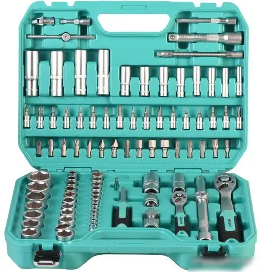 | Комплектация | - Ключ трещоточный 1/4" - Ключ трещоточный 1/2"- Головки торцевые 1/4" 13 шт: 4, 4.5, 5, 5.5, 6, 7, 8, 9, 10, 11, 12, 13, 14 - Головки торцевые 1/2" 18 шт: 10, 11, 12, 13, 14, 15, 16, 17, 18, 19, 20, 21, 22, 23, 24, 27, 30, 32- Головки торцевые удлиненные 1/4" 8 шт: 6, 7, 8, 9, 10, 11, 12,- Головки торцевые удлиненные 1/2" 4 шт : 14, 15, 17, 19 - Биты с торцевыми головками 17 шт: PH1, PH2, SL4, SL5.5, SL7, PZ1, PZ2, H3, H4, H5, H6, T8, T10, T15, T20, T25, - Биты 15 шт: Н8, Н10, Н12, Н14, PH4, PH3, SL8, SL10, SL12, PZ4, PZ3, T55, T50, T45, T40 - Адаптер для бит 1/4" - Шестигранные ключи 3 шт: 2.5 мм, 2 мм, 1.5 мм - Отвертка-битодержатель - Гибкий удлинитель 1/4" - Удлинители 1/4" 100 мм и 50 мм - Головки свечные 21 мм и 16 мм - Кардан на 1/2" и 1/4" - Удлинитель 1/2" 125 мм - Вороток на 1/2" и 1/4 - Переходник с 1/2" четырехгранника на шестигранник Н 5/16 |