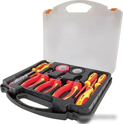 | Комплектация | - Две шлицевые отвертки: SL3x100 и SL5,5x125 мм- Три крестовые отвертки: PH0x60, PH1x80 и PH2x100 мм- Отвертка-индикатор- Пассатижи 160 мм- Бокорезы (кусачки) 160 мм- Длинногубцы 160 мм- Две изоленты ПВХ 0,13 мм х 18 мм х 9 м |