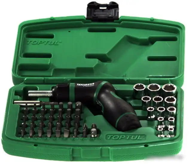 Универсальный набор инструментов Toptul GAAI5401 включает 54 предмета, что позволяет выполнять широкий спектр ремонтных и монтажных работ. В комплект входят торцевые головки размером 1/4", подходящие для различных задач, и 39 бит-насадок для разнообразных крепежных работ. Также есть адаптер для вставок и отвертка под биты, что делает работу более удобной и универсальной. Набор содержит все необходимые инструменты в одном комплекте, что экономит время и упрощает ремонт. Его легко хранить и переносить благодаря компактной комплектации. Такой набор подойдет как для профессионалов, так и для домашних мастеров, обеспечивая надежность и качество в любой ситуации.