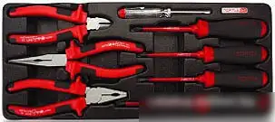 Универсальный набор инструментов Toptul GAAT0809 включает 8 предметов, которые пригодятся для ремонта и сборочных работ. В комплект входят пассатижи, диагональные кусачки длиной 152 мм, длинногубцы, а также четыре отвертки разного типа и размера, что позволяет обращаться с разными винтами и крепежами. В набор также входит тестер длиной 60 мм для проверки электричества. Такой набор удобно брать с собой, он помогает быстро и легко справляться с бытовыми задачами. Все инструменты выполнены из качественных материалов, благодаря чему служат долго.