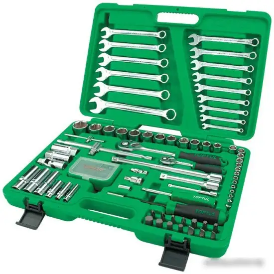 Этот универсальный набор инструментов Toptul GCAI106B включает 106 предметов, необходимых для ремонта и обслуживания. В комплект входят головки и торцевые ключи разного размера, а также глубокие головки, что делает работу более удобной и эффективной. В наборе есть трещотки с зубцами, воротки, удлинители и кардан, чтобы добраться в труднодоступные места. Также есть свечные головки и комбинированные ключи, подходящие для различных задач. В комплекте предусмотрены насадки-борты и держатели для бит, что обеспечивает многофункциональность. Такой набор отлично подойдет как для профессионалов, так и для домашнего мастера, потому что содержит всё необходимое для большинства ремонтных работ. Спасибо своему богатому ассортименту, он поможет вам быстро выполнить любые задачи по ремонту или сборке.