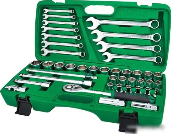Универсальный набор инструментов Toptul GCAI4201 включает 42 полезных предмета для различных ремонтных работ. В комплект входят ключи, головки, насадки и отвертки, выполненные из качественных материалов. Набор оснащён трещоткой, шарниром и удлинителями, что облегчает доступ к труднодоступным местам. Включены как торцевые головки 1/4" и 1/2", так и свечные головки, что делает его подходящим для авто и бытовых задач. Благодаря разнообразию насадок и переходников, вы сможете выполнить широкий спектр работ. Компактная упаковка позволяет удобно хранить все инструменты и быстро находить нужное. Трещотка и комбинированные ключи помогают затягивать и откручивать болты легко и без усилий. Набор подходит для профессионалов и домашнего использования, экономя время и усилия при ремонте.