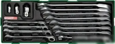 | Комплектация | - Ключи комбинированные: 8, 9, 10, 11, 12, 13, 14, 15, 16, 17, 18, 19 мм- Переходники: 1/4" Dr. x 10 мм, 3/8" Dr. x 13 мм, 1/2" Dr. x 19 мм |