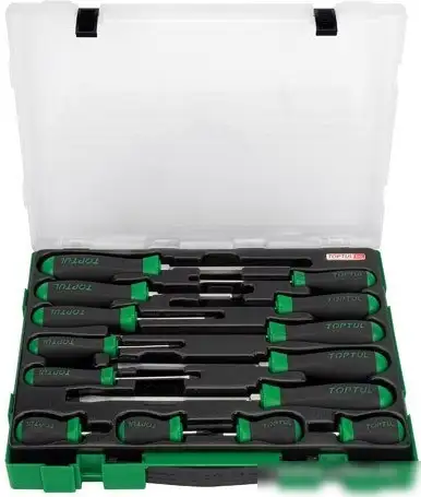 Этот набор отверток Toptul GZC14010 содержит 14 предметов, что позволяет выполнять разные виды работы с различными винтами. В комплект входит как стандартные, так и специальные отвертки, что делает его универсальным и удобным для дома или мастерской. Отвертки выполнены из прочных материалов, что обеспечивает долговечность и надежность при использовании. Благодаря разнообразию размеров и типов отверток, вы сможете легко справиться с любыми задачами, будь то сборка мебели или ремонт техники. Такой набор удобно хранить и брать с собой, он занимает мало места и всегда под рукой. Это хороший выбор для тех, кто ищет качественный и многофункциональный инструмент.