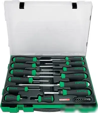 На набор отверток Toptul GZC2005 входят 20 предметов, включая стандартные отвертки, отвертку под биты с размером 1/4", и 7 сменных бит Hex различных размеров (от 2 до 8 мм). Этот набор подходит для различных задач, благодаря разнообразию размеров и типов инструментов. Отвертки хорошо подходят для работы с разными крепежами, а биты легко меняются на стандартной площадке. Все предметы выполнены из прочных материалов, что обеспечивает долговечность и надежность при использовании. Используйте набор для сборки и ремонта бытовой техники, автомобиля или электроники. Биты позволяют быстро адаптироваться под разные задачи благодаря множеству размеров. Компактный и удобный для хранения, его легко взять с собой в работу или на выезд. Такой набор поможет справляться с разными задачами, не нуждаясь в дополнительных инструментах. Удобная комплектация гарантирует, что у вас всегда будет подходящий инструмент под руку.