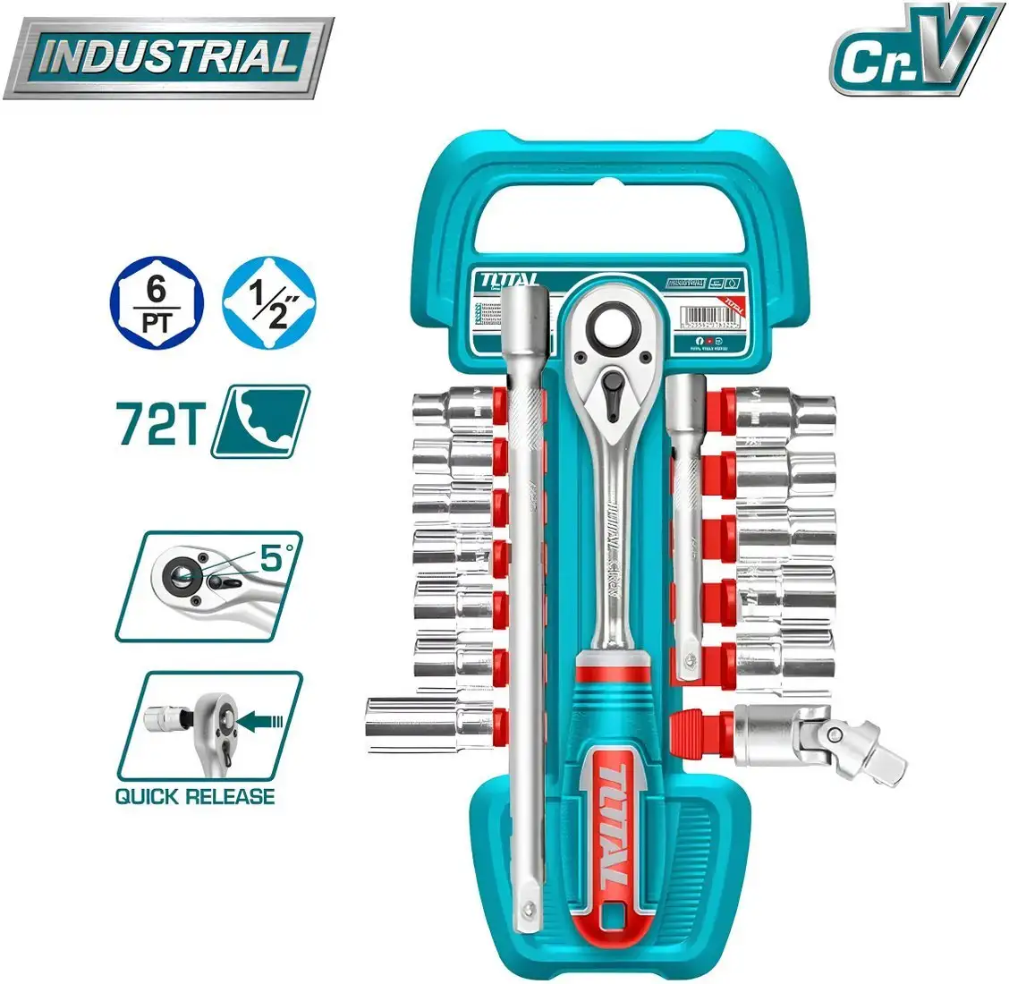 Универсальный набор инструментов Total THT121171 содержит 17 разных предметов, что делает его очень удобным для различных задач. В набор входит трещотка с размером 1/2", которая легко вращается и помогает закручивать или откручивать крепеж. В комплекте есть 12 торцевых головок для разных размеров болтов и гаек, а также свечная головка для работы с свечами зажигания. Для расширения возможностей используются два удлинителя и универсальный шарнир, что позволяет работать в труднодоступных местах. Вся техника аккуратно собрана и хранится в пластиковом подвесе, что удобно для хранения и транспортировки. Этот набор подойдет как для домашнего использования, так и для профессиональной работы. Он обеспечит быстрый и удобный подход к любым ремонтным заданиям.