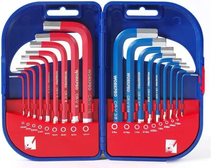 Этот набор ключей Workpro WP222037 состоит из 18 предметов, которые подойдут для различных задач. В комплект входят метрические ключи с размерами от 1,5 мм до 10 мм и SAE ключи с размерами от 1/16 до 3/8 дюймов. Все ключи выполнены из прочного материала и включают угловые шестигранные ключи для работы в узких местах. Такой набор удобно держать под рукой для ремонта и обслуживания домашней техники и автомобиля. Он позволяет быстро и точно затягивать или ослаблять гайки и болты разного размера. Разнообразие размеров делает его универсальным инструментом для дома и мастерской. Вы легко найдете нужный ключ благодаря хорошо организованной комплектации. Надежность и удобство использования обеспечивают работу без лишних хлопот. Этот набор станет полезным помощником для любого домашнего мастера.