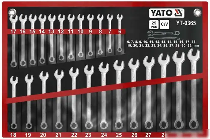 Набор ключей Yato YT-0365 включает 25 комбинированных ключей различных размеров от 6 мм до 32 мм, что позволяет вам легко работать с разными болтами и гайками. Каждый ключ выполнен из прочного материала, который долго сохраняет форму и устойчивость к износу. Набор подходит для разных задач — от бытового ремонта до профессиональных работ. Благодаря компактной комплектации, все ключи удобно разместить в специальной коробке для хранения и транспортировки. Используйте набор для быстрого и надежного закрепления деталей. Комбинированный дизайн обеспечивает удобство как при закручивании, так и при откручивании. Ключи имеют эргономичную форму, что снижает усталость рук во время работы. Набор включает ключи необходимых размеров, не требуя покупки дополнительных инструментов. Это идеально решение для тех, кто ищет качественный и универсальный набор инструментов для домашней мастерской.