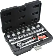 | Комплектация | - Головки: 6, 7, 8, 9, 10, 11, 12, 13, 14, 15, 16 мм (длина 28 мм), 17, 18, 19, 20, 21, 22 мм (длина 30 мм);- Удлинители - 76, 152.4 мм, - Переходник,- Вороток - длина 198 мм,- Изготовлены из инструментальной стали CrV.- Ключ-трещотка, длина 200 мм, 72 зуба, изготовлен из инструментальной стали CrMo. |