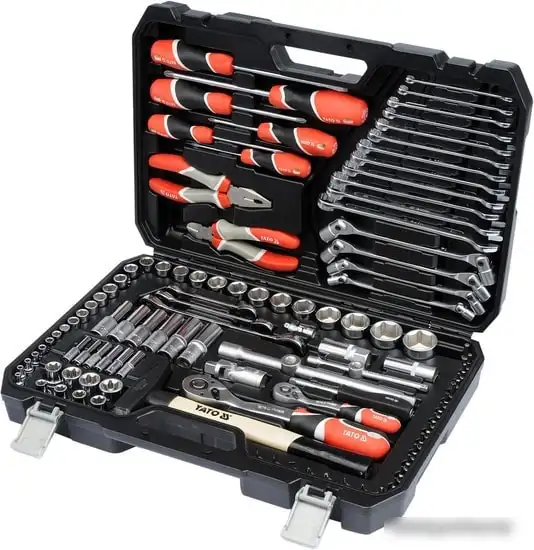 Универсальный набор инструментов Yato YT-38891 включает 109 предметов, которые подойдут для различных ремонтных и монтажных работ. В комплекте есть торцевые головки разных размеров и типов, включая глубокие и Е-тип, что позволяет легко работать в труднодоступных местах и с разными болтами. В набор входят трещотки с двумя размеровыми головками (1/2" и 1/4"), а также удлинители и переходник для удобства использования. Есть головки свечные и комбинированные ключи, которые пригодятся при ремонте авто и бытовых устройств. Также в комплект входят пассатижи, кусачки и молоток с деревянной ручкой для разнообразных задач. Отвертки с разными насадками и отвертка под биты помогают быстро менять крепеж. Набор универсально подходит для профессионалов и домашних мастеров, позволяя выполнять разные виды работы одним комплектом.