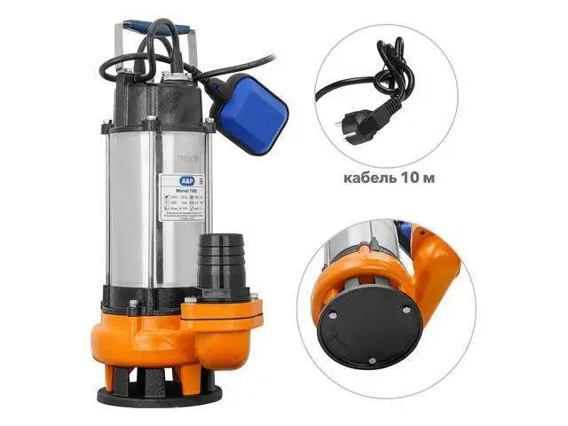Фекальный насос A&P Marvel 7000 предназначен для эффективной откачки загрязнённых вод. Он устанавливается вертикально и погружается в воду на глубину до 7 метров. Насос имеет производительность 24 кубических метра в час и создаёт напор до 15,6 метров, что позволяет быстро справиться с объемными и загрязненными водами. Корпус изготовлен из чугуна и нержавеющей стали, что обеспечивает долговечность и устойчивость к коррозии. Мощность двигателя — 750 Вт, а диаметр пропускаемых частиц — 20 мм, что позволяет перекачивать воду с крупными частицами.