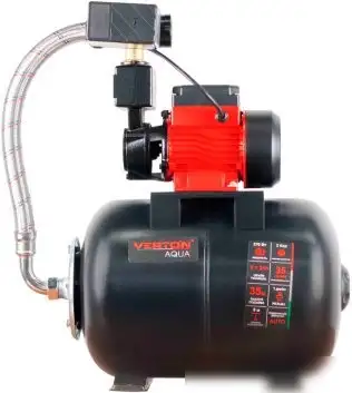 Насосная станция Verton Aqua PS370C/24 предназначена для подачи чистой воды в доме или на участке. Она устанавливается горизонтально и работает без аккумулятора, подключаясь к электросети. С производительностью 3,3 кубометров в час и максимальным напором 35 метров, она легко справляется с перекачиванием воды на большую глубину — до 8 метров. Корпус выполнен из прочного чугуна, а мощность составляет 370 Вт, что позволяет ей работать эффективно и долго. В системе есть гидроаккумулятор объемом 24 литра, что обеспечивает стабильное давление и плавное включение. Насос подходит для воды с температурой до 60°C, а диаметр соединения — 1 дюйм. Он легко устанавливается, занимает немного места и имеет простой в использовании дизайн.