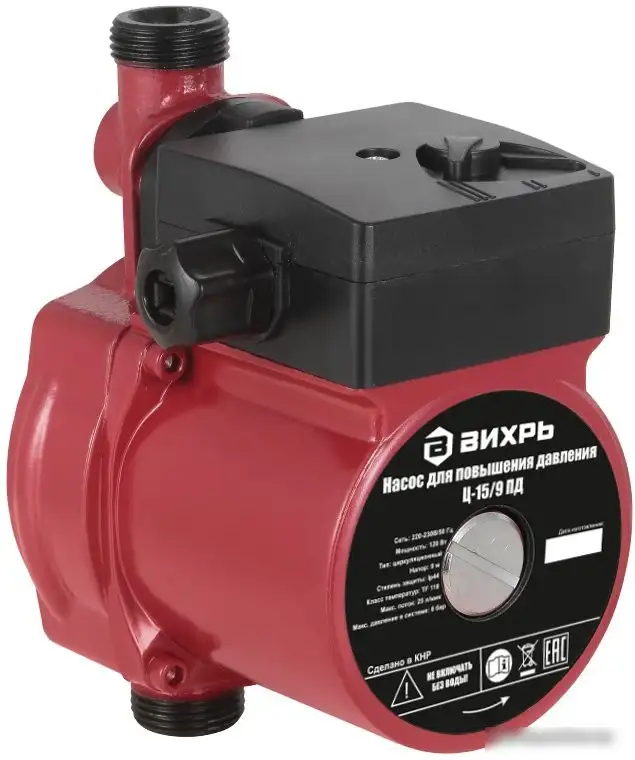 Установка повышения давления Вихрь Ц-15/9 ПД предназначена для увеличения давления воды в системах водоснабжения. Она работает поверхностным методом и не использует аккумулятор, что обеспечивает простоту в использовании и надежность. Производительность составляет 1,5 м³/час, а максимальный напор — 9 метров, что позволяет поднимать воду на разные уровни. Устройство создаёт давление до 6 бар, обеспечивая стабильную работу системы. Корпус выполнен из прочного чугуна, что делает его долговечным и стойким к нагрузкам. Мощность насоса составляет 120 Вт, что позволяет эффективно перекачивать чистую воду. Работает при напряжении 220 В, без необходимости постоянного обслуживания аккумулятора. Размеры компактные, вес всего 2,73 кг, что облегчает монтаж и транспортировку. Установка идеальна для домашних систем и дач, помогая поддерживать постоянное давление и комфорт.