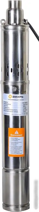 Скважинный насос Вихрь СН-100B/3 предназначен для подачи воды из скважин и колодцев. Он устанавливается вертикально и работает погружным методом. Модель обладает высокой производительностью — до 2,1 кубометров воды в час, и обеспечивает хорошее давление — до 100 метров. Корпус насоса сделан из нержавеющей стали, что делает его прочным и долговечным. Насос не имеет аккумулятора, работает от обычной электросети с напряжением 220 В и мощностью 1100 Вт. Его диаметр — 76,2 мм, а длина кабеля — 20 метров, что удобно для установки. Насос легкий — всего 8,12 кг, что упрощает транспортировку и монтаж. Этот насос подойдет для перекачки чистой воды из глубоких скважин.