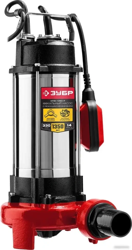 Фекальный насос Зубр НПФ-1350-Р предназначен для отведения сточных вод и работает в вертикальной погружной установке. Он выполнен из чугуна, что обеспечивает прочность и надежность. Насос способен перекачивать до 19,8 м³ воды в час при напоре 13,5 метров. Мощность прибора — 1350 Вт, он подключается к сети с напряжением 220 В. Устройство погружается на глубину до 5 метров и работает в температурном диапазоне до 35 °C. Диаметр соединения — 2 дюйма, длина кабеля — 5 метров, что удобно для установки. Насос легко устанавливать вертикально и он может перекачивать жидкость с различными характеристиками. Его размеры: длина 250 мм, ширина 320 мм, высота 560 мм, вес — 19,4 кг. Он хорош для очистки и отвода фекальных и сточных вод благодаря прочной конструкции и высокой производительности.