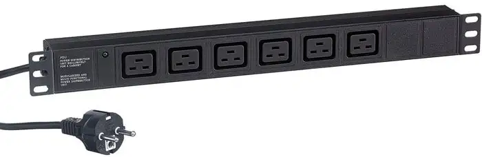 Блок розеток ExeGate ServerPro PDU-19H013 обеспечивает надежное подключение устройств через шесть IEC320-C19 розеток с заземлением. Он легко монтируется в 19-дюймовую стойку и занимает всего 1U высоты. Длина сетевого шнура составляет 3 метра, что дает удобство при размещении. Максимальный ток нагрузки — 16А, что подходит для большинства серверных устройств. Корпус выполнен в черном цвете, что хорошо сочетается с профессиональной техникой. Устройство оснащено светодиодной индикацией, которая показывает его статус и помогает следить за работой.