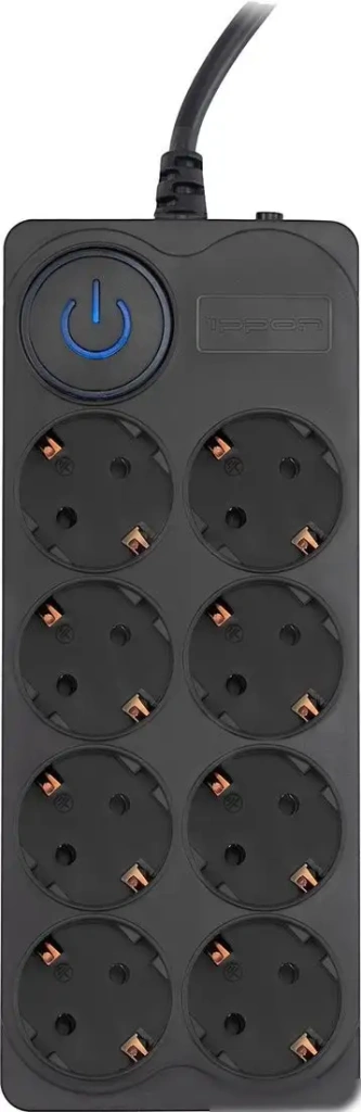 Сетевой фильтр IPPON BK-8-EU-3-16-B обеспечивает безопасное подключение до восьми устройств с помощью евроразеток Schuko с заземлением. Он защищает подключённую технику от перегрузок и коротких замыканий, благодаря встроенной защите от перегрева. Максимальная нагрузка составляет 3500 Вт при токе до 16 А. Устройство легко включается и выключается с помощью кнопки, а светодиодный индикатор показывает состояние фильтра. Кабель питания длиной 3 метра удобно размещает фильтр в любой части помещения. Корпус выполнен в черном цвете и легко крепится к стене. Для дополнительной защиты есть механизм отключения при импульсе до 150 Дж. Отлично подходит для обеспечения стабильной работы бытовой и офисной техники.