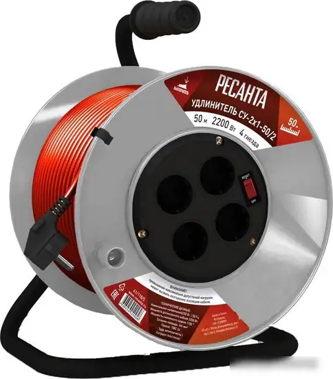 Удлинитель Ресанта СУ-2х1-50/2 имеет четыре выходные розетки, что позволяет подключать сразу несколько устройств. Он обеспечивает эффективную мощность до 2200 Вт, подходящую для бытовых и профессиональных нужд. Кабель длиной 50 метров дает возможность свободно размещать технику на большом расстоянии от розетки. Светодиодная индикация показывает, когда устройство включено и готово к использованию. Корпус выполнен в сочетании красного, серого и черного цветов, что делает его стильным и легко заметным. Удлинитель удобно хранить благодаря катушке для кабеля, что обеспечивает порядок и безопасность хранения. Номинальное входное напряжение устройства — от 0 до 250 В, что подходит для различных электросетей. Он весит около 5 кг, что делает его достаточно стабильным и надежным в использовании. Такой удлинитель — хороший выбор для тех, кто нуждается в долгом и надежном подключении техники.