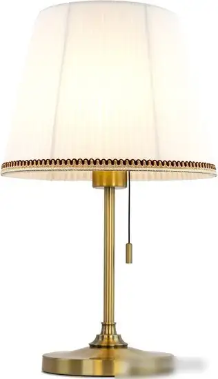 - Классический дизайн с текстильным абажуром — создает мягкое и приятное освещение.