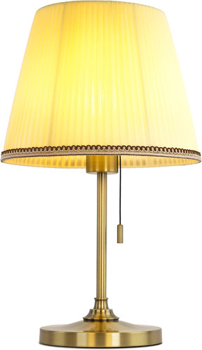 Настольная лампа Citilux Линц CL402733 имеет металлический каркас бронзового цвета и текстильный абажур бежевого цвета, что придает ей стильный внешний вид. Лампа оснащена одной мощной лампочкой мощностью 40 Вт с цоколем E27, подключается к сети и подходит для любых стандартных розеток. Она легко размещается на столе или полке и не занимает много места благодаря размерам 26x26x30 см и весу всего 1,1 кг. Устройство не оснащено встроенными светодиодами и не имеет дополнительных функций, таких как диммер или возможность регулировки цвета света. Выключатель расположен на корпусе, его удобно использовать для быстрого включения и выключения. Эта лампа подходит для освещения рабочего места или комнаты, создавая уютную и приятную атмосферу.