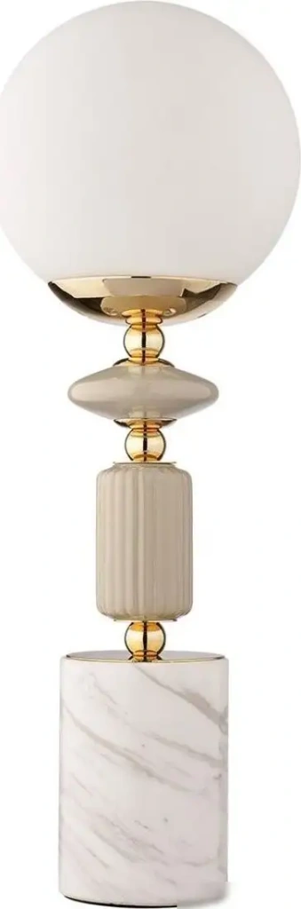 Настольная лампа Lumion Classi Vivien 6580/1T обладает стильным дизайном с золотистым каркасом из керамики и металла, а плафон изготовлен из белого стекла. Она подходит для любой комнаты, легко устанавливается на стол или тумбочку. Лампа оснащена одной мощной лампочкой с цоколем E14, потребляющей 40 ватт, которая обеспечивает теплое мягкое освещение. Управление лампой осуществляется с помощью выключателя, встроенного в корпус. Размеры лампы — 18х18х45 см, она весит всего 2 кг, что облегчает перенос. Простая конструкция не предусматривает регулировки яркости или дистанционного управления. Лампа не имеет встроенных светодиодов и датчиков, она полностью рассчитана на работу с обычной лампочкой. Она отлично вписывается в интерьер и создает уютную атмосферу в помещении.