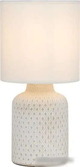Настольная лампа Rivoli Sabrina отлично подойдет для создания уютной атмосферы в любой комнате. Она выполнена из керамики с текстильным абажуром белого цвета, что придает ей привлекательный и современный вид. Лампа оснащена одним светильником мощностью 40 Вт с цоколем E14, который легко подключается к сети через шнур длиной 1,2 м. Вы можете включать и выключать лампу с помощью встроенного выключателя, расположенного на корпусе. Благодаря компактным размерам (15x15x31,5 см) она не займет много места на столе или тумбочке. Лампа не имеет функций регулировки яркости или температуры света, что делает ее простым и надежным источником освещения. Она легкая, весит всего 0,62 кг, и легко вписывается в любой интерьер. Такой дизайн отлично подойдет для домашнего использования, создавая комфорт и тепло.