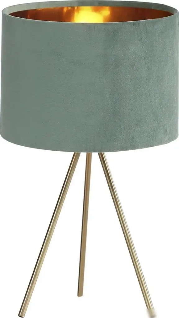 - Стильный дизайн: Золотистый каркас и зеленый абажур украшают интерьер и создают уют.