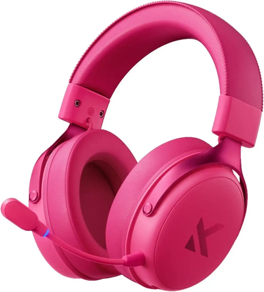Наушники MCHOSE V9 Pro розового цвета подходят для игр и общения благодаря монолитной конструкции с закрытым акустическим оформлением, которое обеспечивает хорошую звукоизоляцию. Они оснащены динамическими излучателями диаметром 53 мм, создающими объемное звучание, что позволяет полностью погрузиться в игру или музыку. Встроенный беспроводной интерфейс Bluetooth 5.3 и совместимость с PlayStation 4, 5 и Nintendo Switch обеспечивают удобное подключение без проводов. Наушники имеют съемный кабель USB Type-C и распределяют управление на корпусе, позволяя регулировать громкость, переключать пресеты эквалайзера и приглушать микрофон. Амбушюры выполнены из кожи, а регулировка оголовья помогает настроить комфорт под себя. Микрофон гибкий, съемный, с шумоподавлением, что повышает качество голосовой связи. Время работы аккумулятора достигает 250 часов на одном заряде, а бодиконтроль осуществляется через приложение MCHOSE Hub. Легкая конструкция весом 275 г делает их удобными для долгого ношения. В комплект входит кабель, радиоадаптер, переходник USB Type-C — USB Type-A и ветрозащита для микрофона.