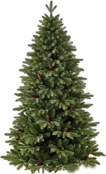 искусственная ель, литая+ПВХ, 2.1 м, цвет зеленый, шишки