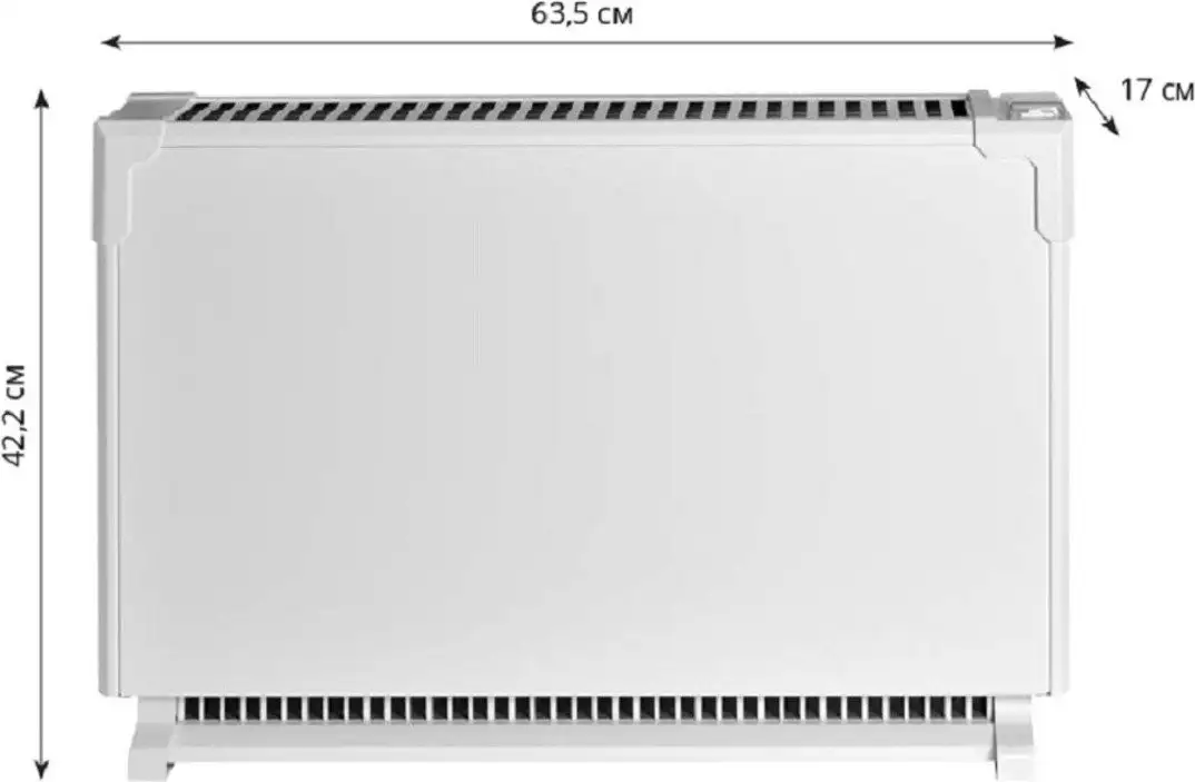 конвектор, монолитный (x-образный), 1500 Вт, термостат, управление механическое, площадь обогрева 20 м2