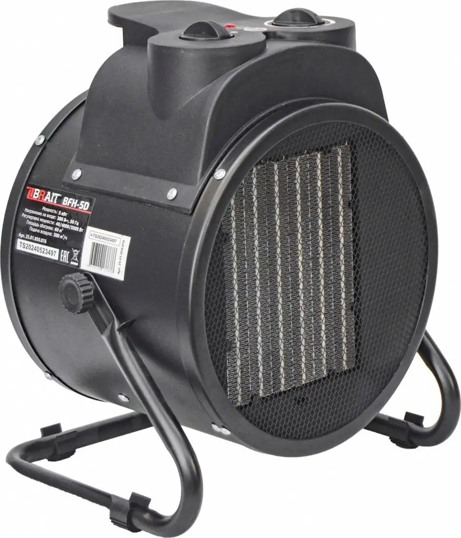 Тепловентилятор Brait BFH-5D производится в Китае и предназначен для обогрева помещений. Он имеет мощность 5000 Вт и работает от обычной сети 230 В. Управление механическое — пользователь регулирует уровень мощности вручную, выбрав между 2500 и 5000 Вт. В устройство встроен термостат, который помогает поддерживать комфортную температуру. Обогрев осуществляется легко и быстро благодаря нагревательному элементу, а есть и режим обдува без нагрева — для вентиляции. Тепловентилятор устойчив и безопасен в использовании благодаря автоматическому отключению при опрокидывании или перегреве. Компактный и легкий — всего 3,9 кг, с гладким корпусом и ножками для стабильной установки.